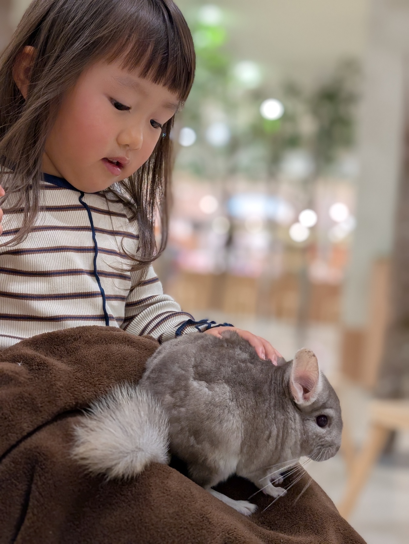 ふわふわな触り心地のチンチラさん。ふれあい体験も行っております!