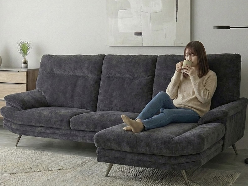 癒しの空間をより快適に寛げるファブリックソファ「エトナ」。高さ15cmと高さがあるのでお掃除ロボットはもちろん掃除機も入りやすく、お掃除ラクラク。