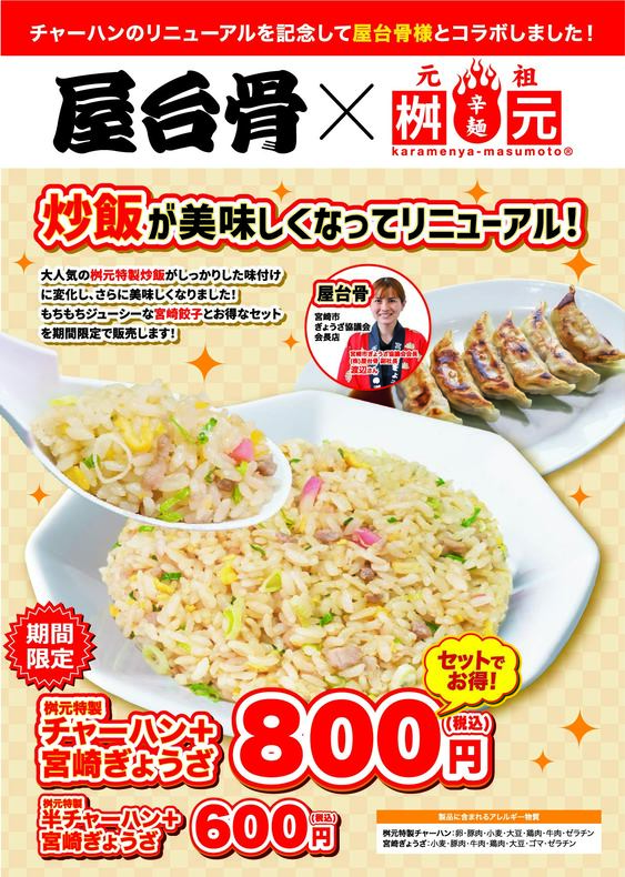 チャーハン+宮崎餃子:800円 半チャーハン+宮崎餃子:600円
