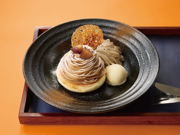 モンブランパンケーキ ~ほうじ茶クリームと黒蜜添え~