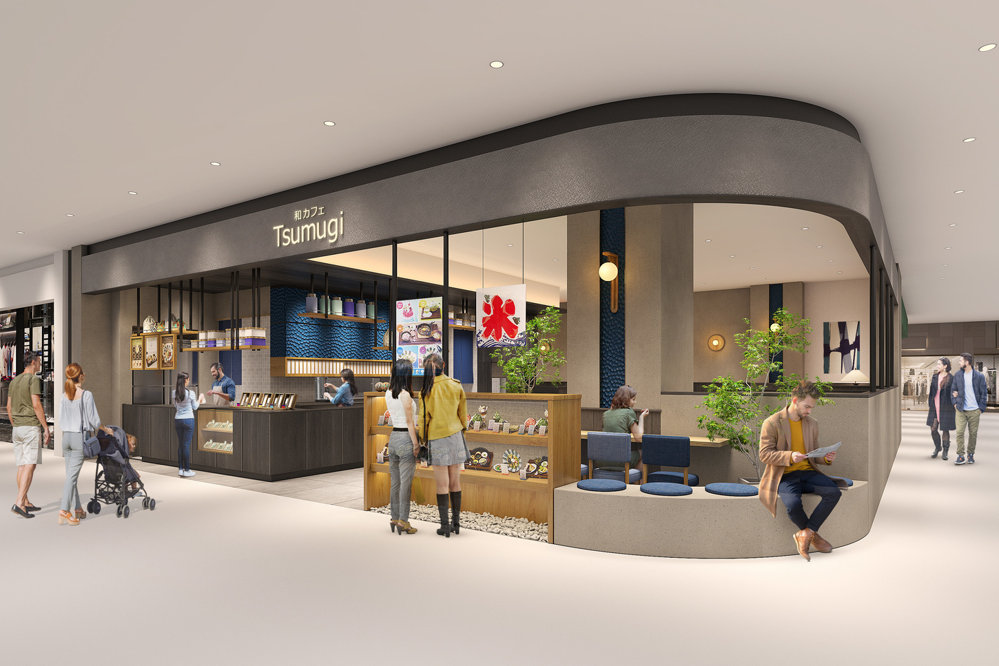 和のモチーフや色(藍色)を取り入れた居心地のよい空間と、和テイストのドリンクやごはん・スイーツなどを取り揃えた和カフェです。創業160年の歴史をもつ老舗茶屋「袋布向春園本店」の日本茶を提供しています。