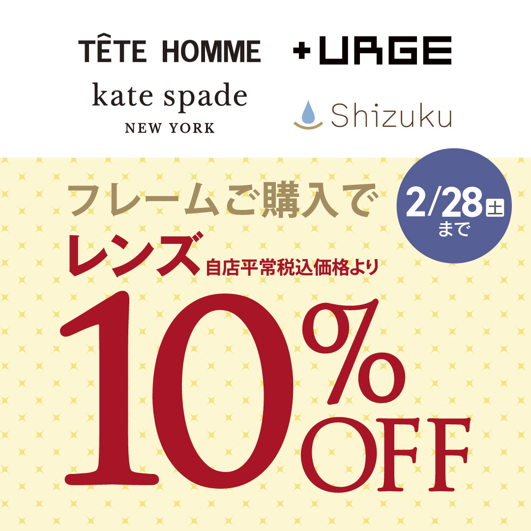 対象のフレームご購入で、レンズを自店平常税込価格より10%OFFの特別価格にてご提供します。