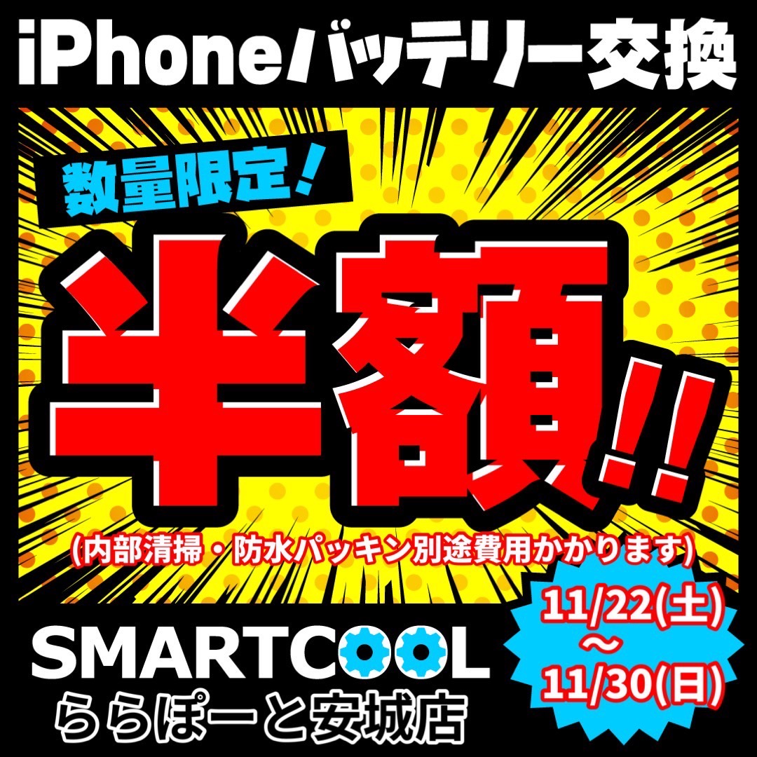 【期間限定11月22日(土)〜11月30日(日)】iPhoneバッテリー半額!!