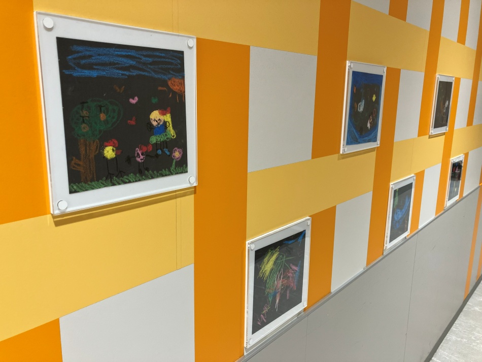 3Fのトイレに向かう通路は、地域の方々のギャラリーとして、様々なアートを展示していきます。