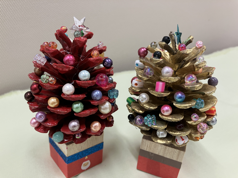 安城産のこたつに入りながら、「松ぼっくりツリー」をつくりましょう!