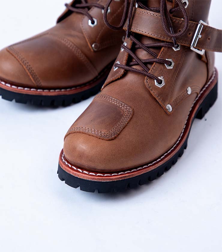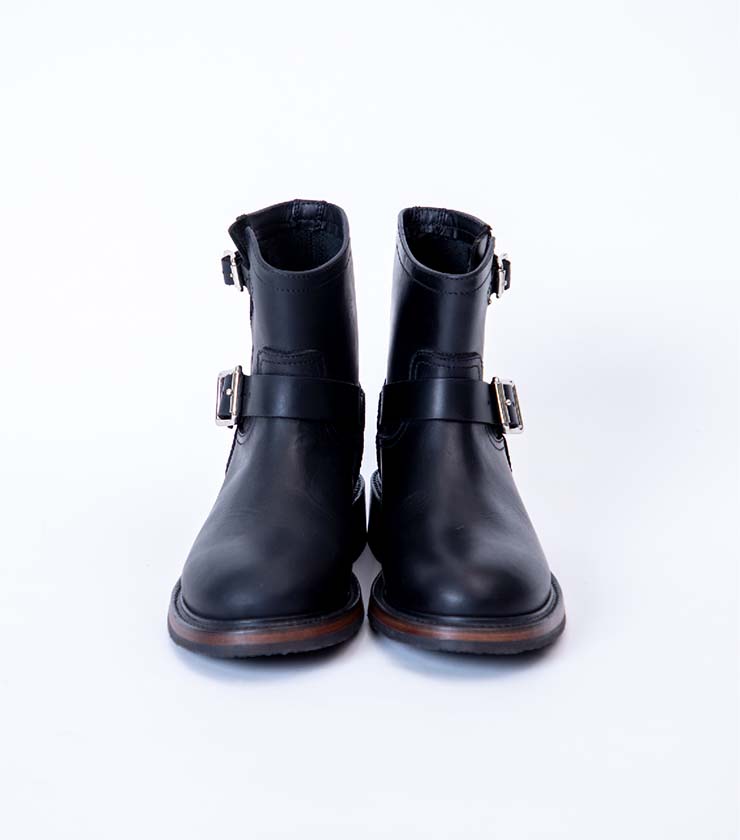 堅牢なグッドイヤー製法で仕立てた、定番のライダーブーツ。バックル付きベルトでホールド感はありながらも、サイドファスナーで着脱しやすいのもうれしいポイントです。バイク用シフトガードを備えた本格仕様ながら、街履きにも映える端正なデザインが魅力です。