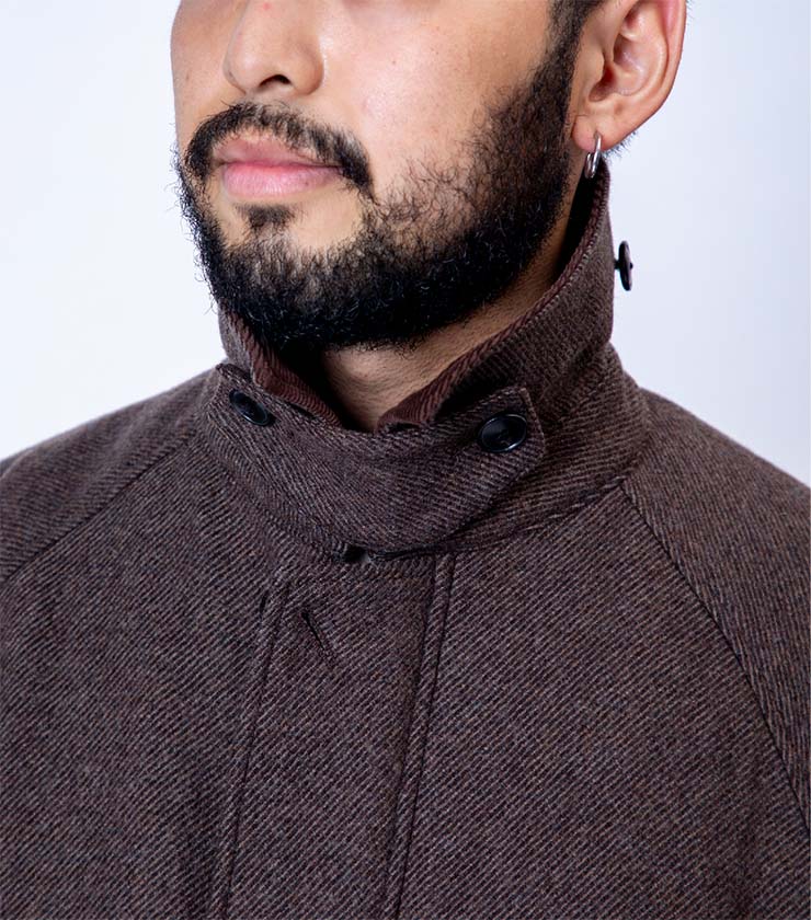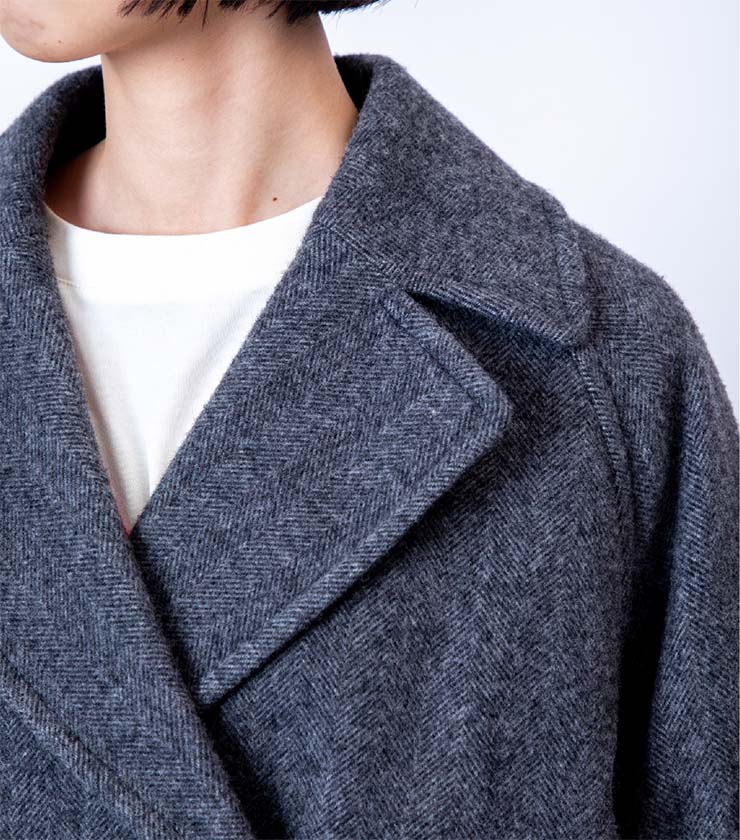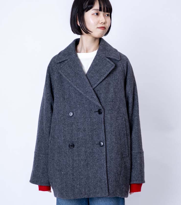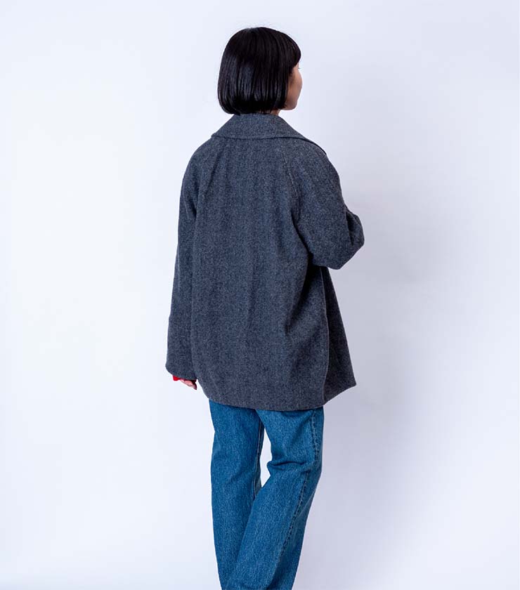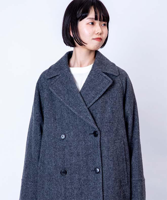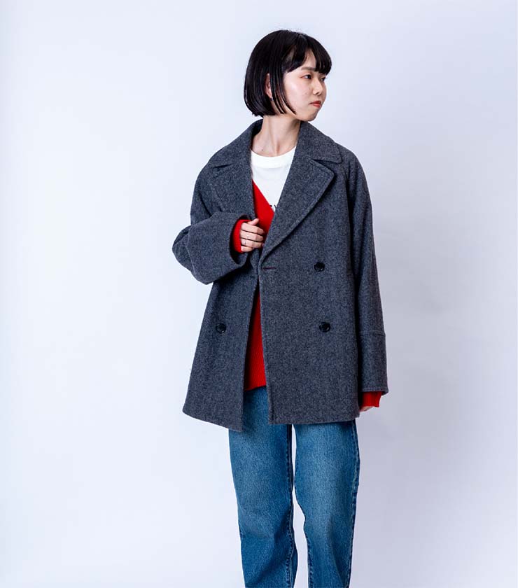 人気のスーパーファインビーバーシリーズから、待望のハーフコートが登場しました。最高品質のウールは滑らかで上品な光沢感とふっくらとした肌触りが魅力です。低めに配したボタン位置とラグランスリーブが抜け感と快適な着心地を実現。衿を留めればステンカラー風にもなり、真冬まで活躍します。