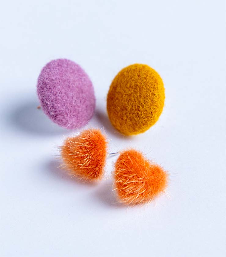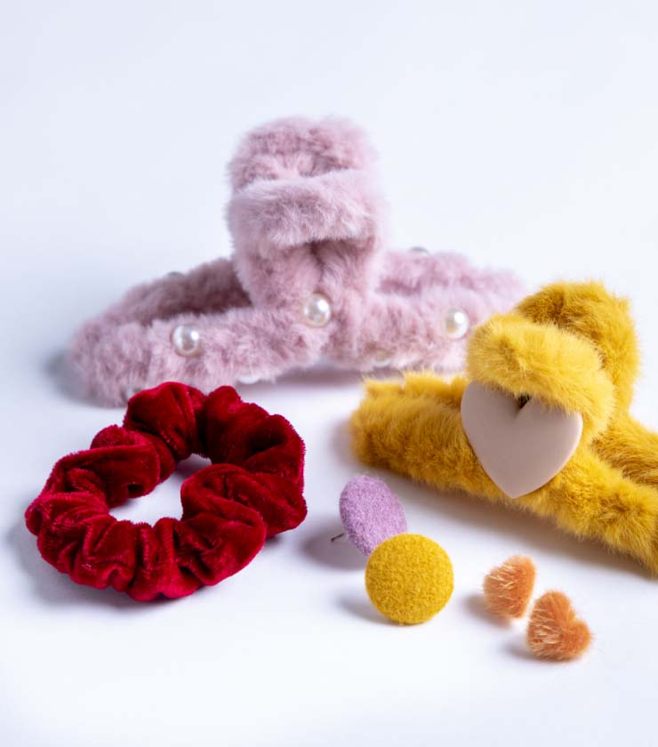 フェイクファーやベロアなど、季節感のある素材が魅力のアクセサリー。マスタードやレッドなどの暖色を、シュシュやピアスでさりげなく添えれば、コーデが一気に華やぎます。色の分量が少ない小物は差し色初心者にもおすすめ。装いを上品にアップデートしてくれる優秀アイテムです。