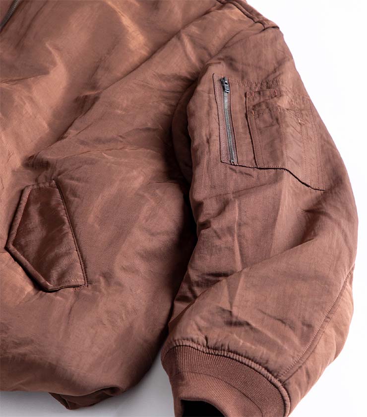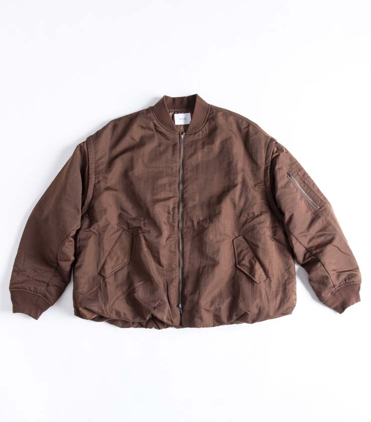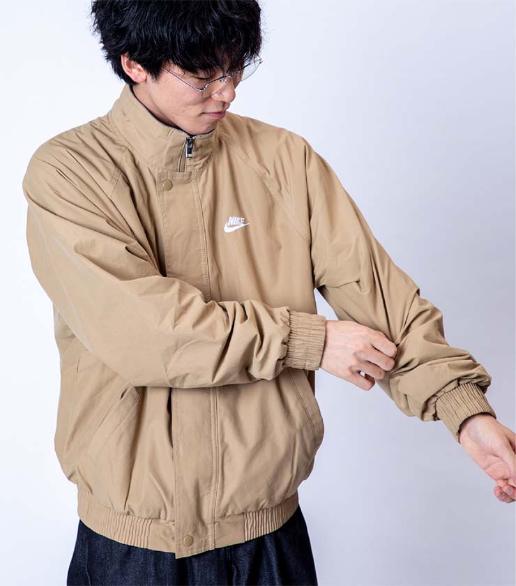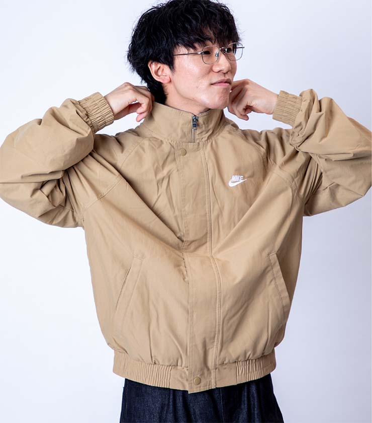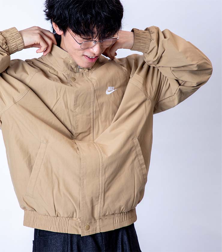 レイヤードを楽しみやすいし、少し余裕のあるシルエットがアーバンなスタイルと好相性です。なめらかなウーブン素材を使用し、スポーティながらもスマートな印象にまとまります。胸元のロゴ刺繍も控えめサイズで主張しすぎず、都会的に着こなせます。