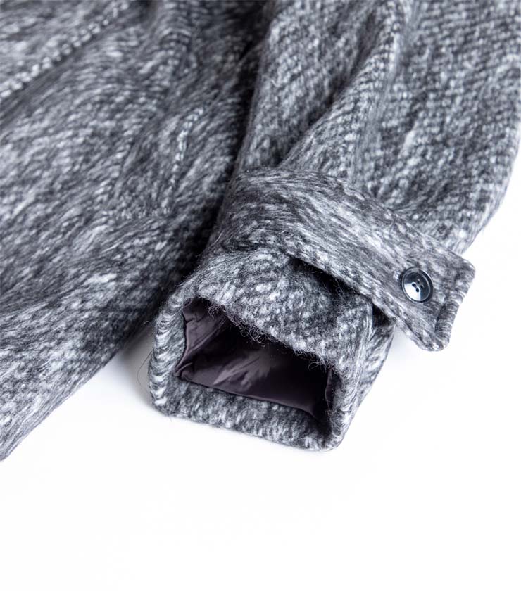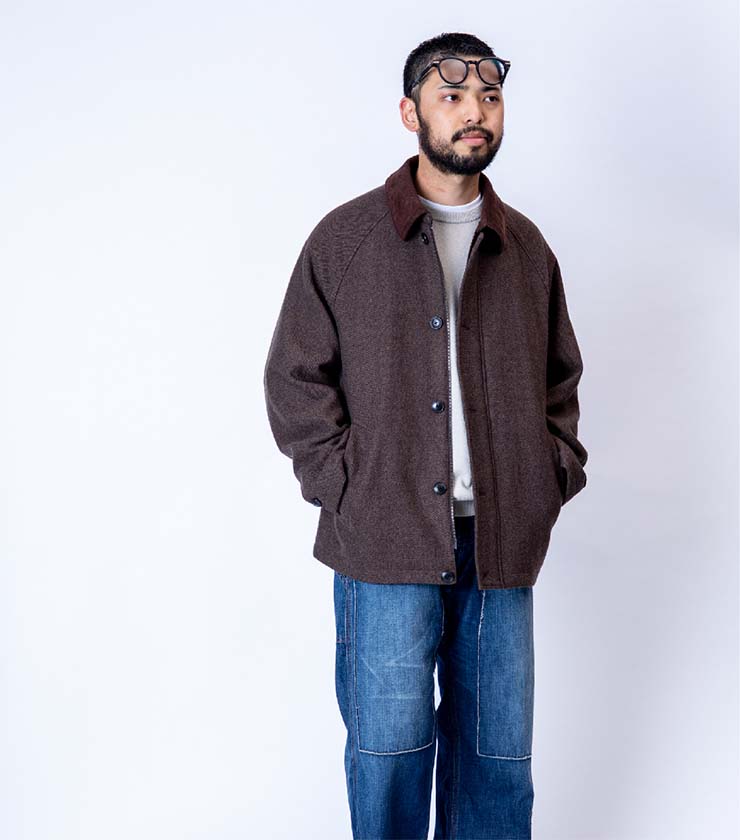 類まれなる弾力性と圧倒的な保温性が特徴の「ハイランドウール」を使った、毎年人気のショートブルゾンがアップデートされました。見た目の重厚さとは裏腹に軽く、ストレスフリーな着心地です。ポイントになったコーデュロイ襟は、スタンドカラーにもできます。