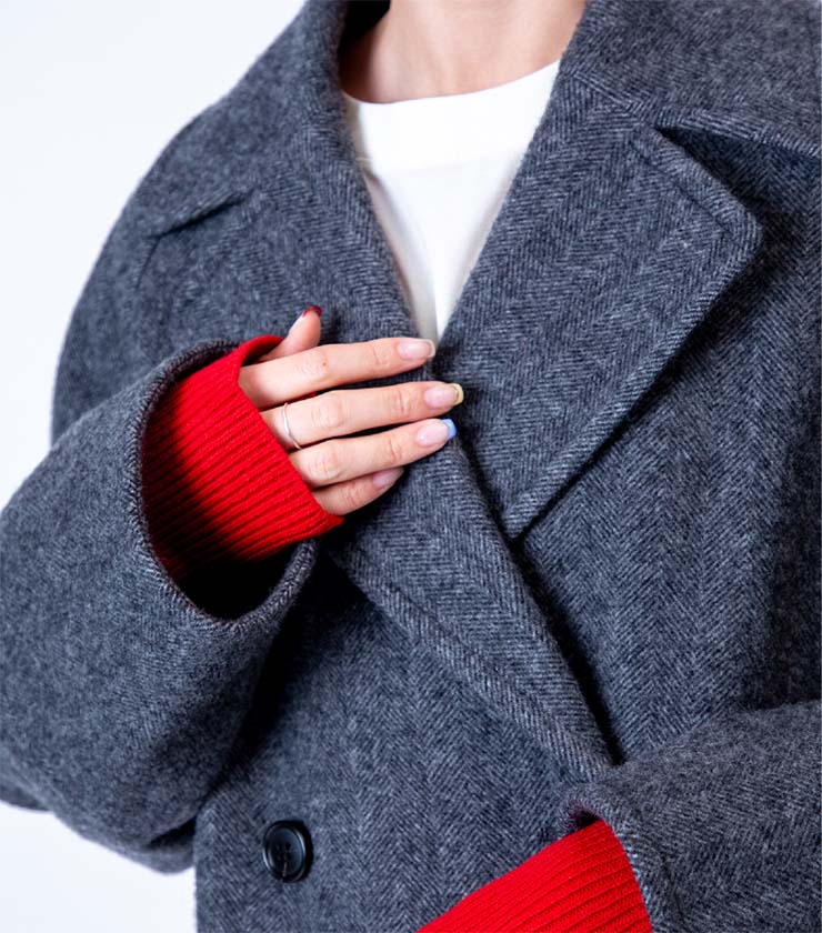 襟元のコーデュロイが上品な