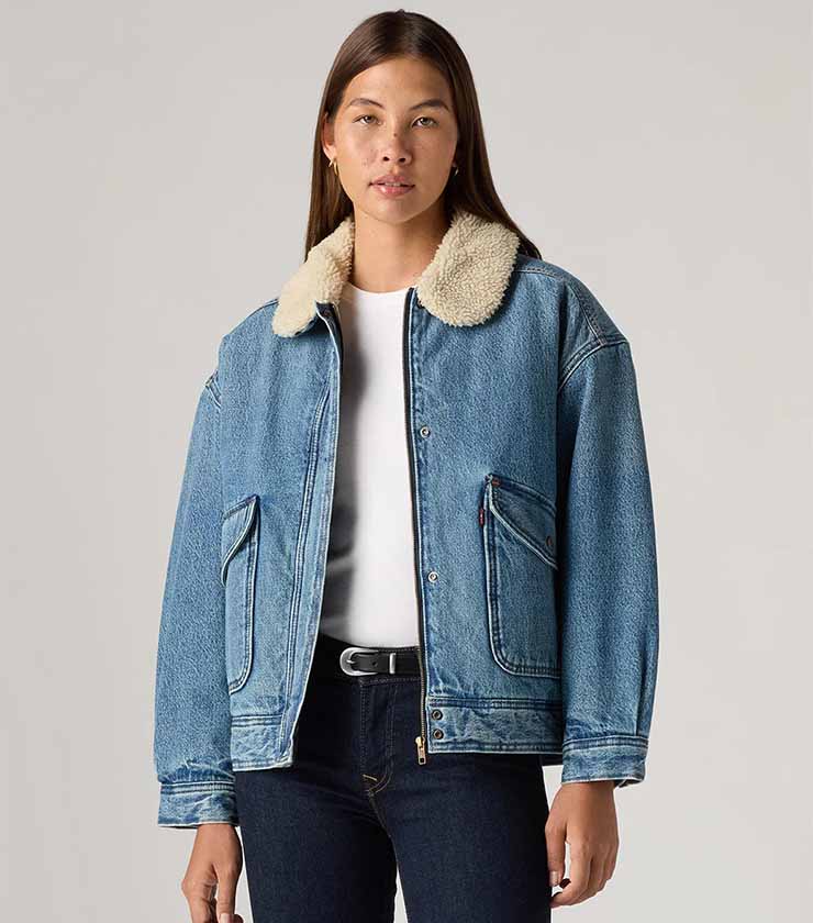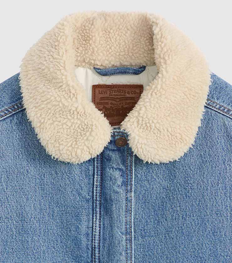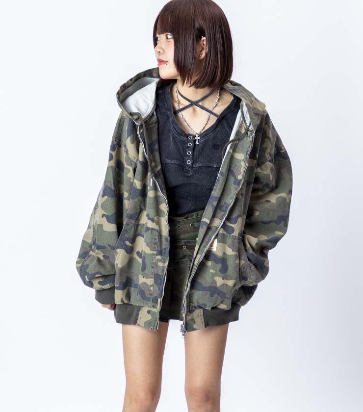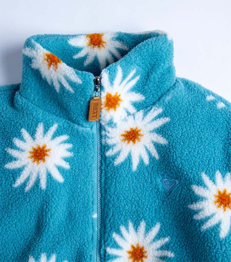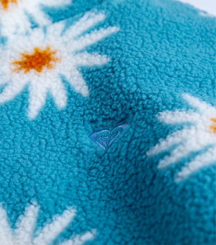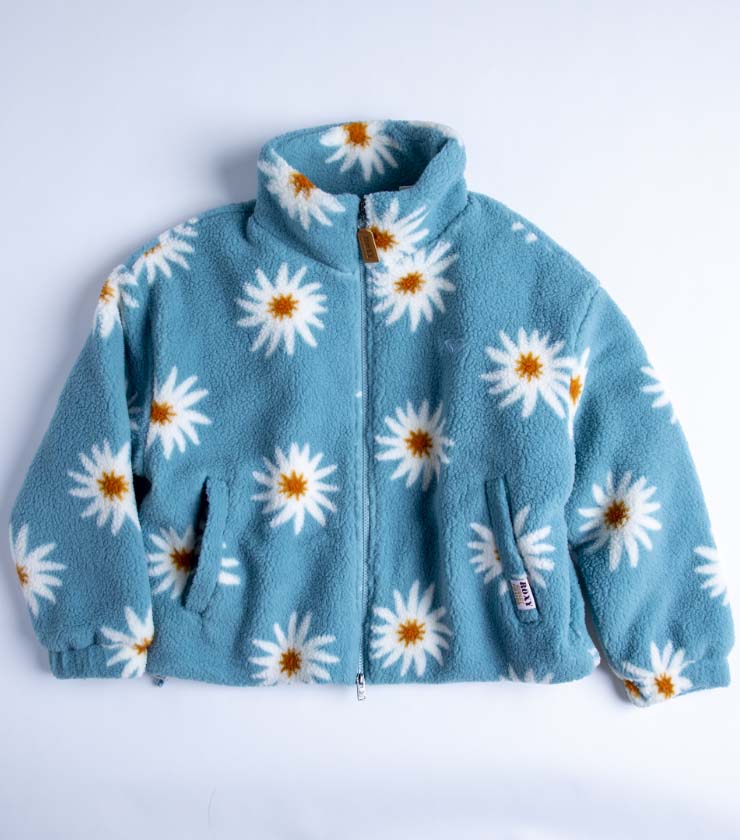 水色に白の花柄が印象的なショート丈のボアジャケットは、中綿入りでしっかりと暖かいのが特徴。胸元のROXYハートの刺繡や左裾にはオリジナルのネームなど、細かいディテールにこだわりが詰まった一枚です。ショーツ×ブーツなどのアクティブなスタイルと合わせるのがおすすめです。