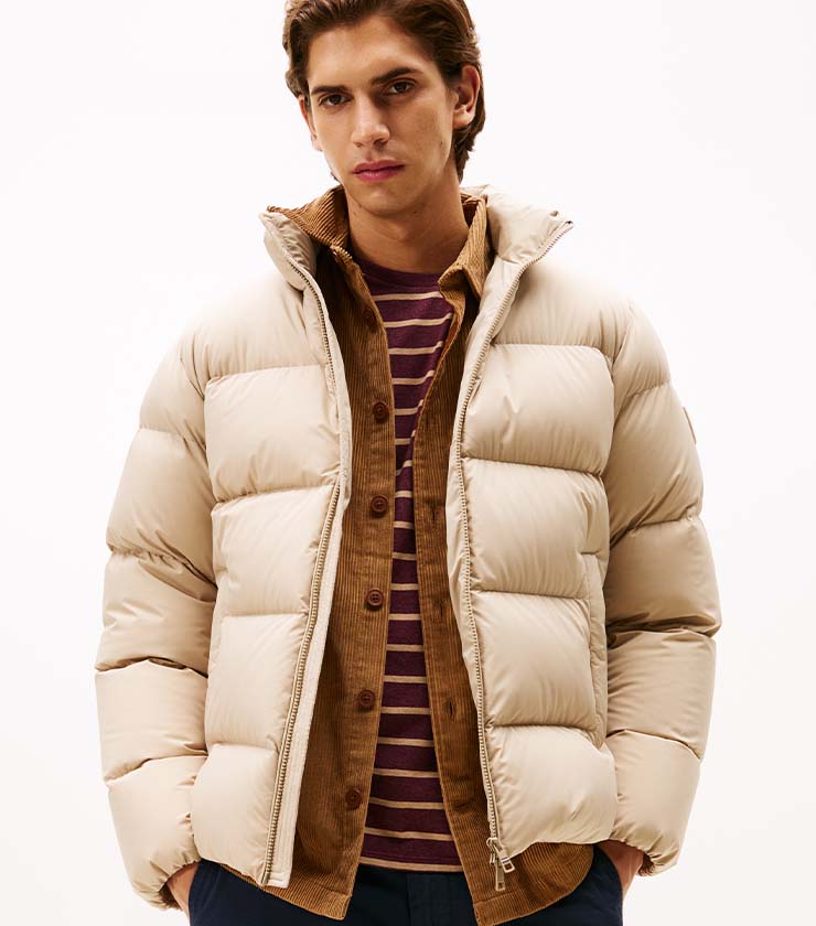 人気の「Gorhamジャケット」から着想を得た、軽量で保温性に優れたダウンジャケット。水をはじくリップストップ素材に、さりげないウィンドウペン柄が上品なアクセントを添えます。レザープル付きの2WAYジップや胸元のロゴなど、細部にまでブランド美学が凝縮されています。