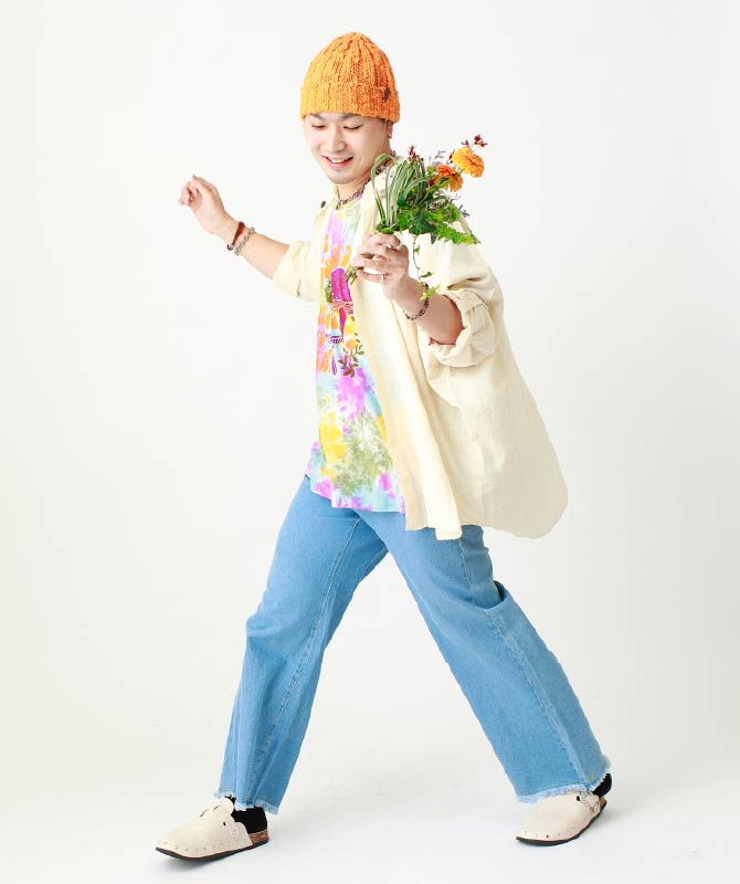 総柄デニムコーデ