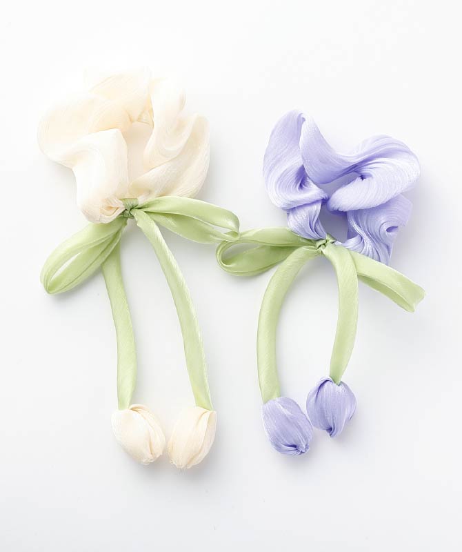 暖かい春にぴったりの新作アクセサリーがラインナップ。シュシュはやさしいカラーとふんわりとしたフォルムが魅力。さっと結ぶだけで後ろ姿に華やぎをプラスします。ネックレスとかんざしは桜をモチーフ。春を思い切り表現できるマストバイアイテムです。