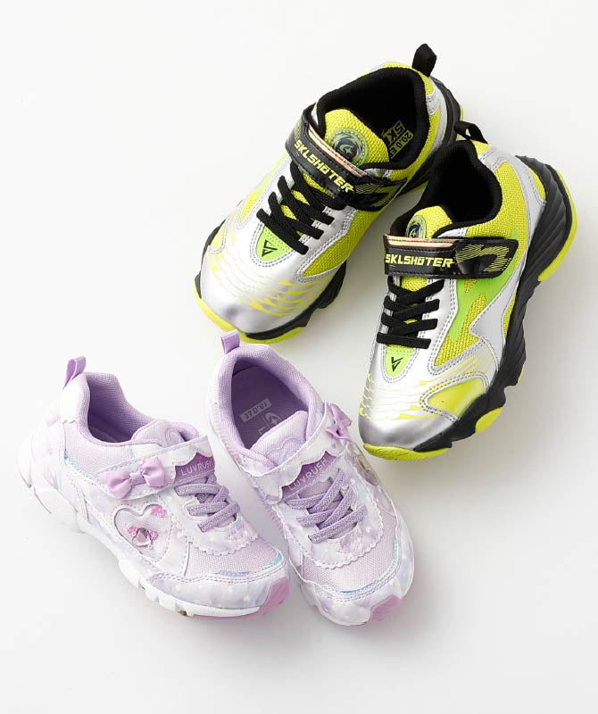 男の子向けモデルは、スパイク形状のソールが走りをサポートします。洗えるインソールなど毎日を快適に過ごせる機能が充実。女の子向けモデルは、靴底のゴムが推進力をアシスト。ハートのデザインで可愛さもプラス。