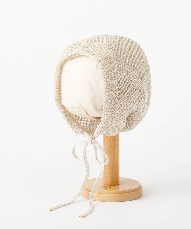 繊細なニットが、春の装いにやわらかさを添えるボンネット。透かし編みの軽やかな風合いとリボンデザインが、さりげなく女性らしさを演出します。いつものコーデに取り入れるだけでアクセントになり、カジュアルからフェミニンまで幅広く楽しめるアイテムです。
