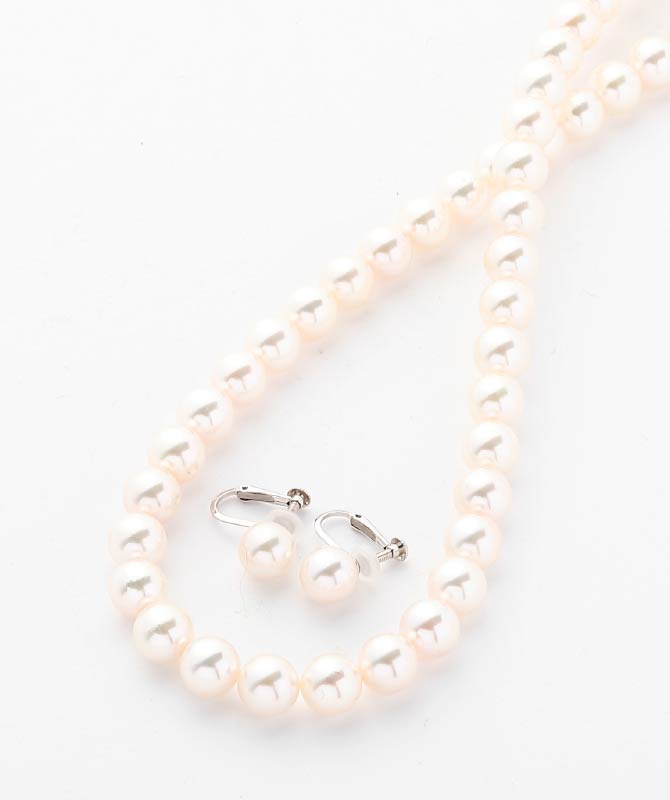 上品な輝きが魅力のパールネックレスとイヤリングのセット。シンプルで洗練されたデザインは、入学式や卒業式などのフォーマルシーンなどで活躍します。顔まわりをやさしく華やかに彩り、大人の装いに気品を添えるアイテムです。