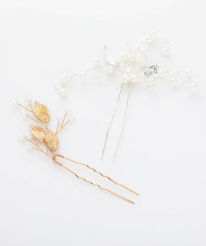 リーフ×クリスタルビーズコーム 330円、パール×リーフコーム 460円