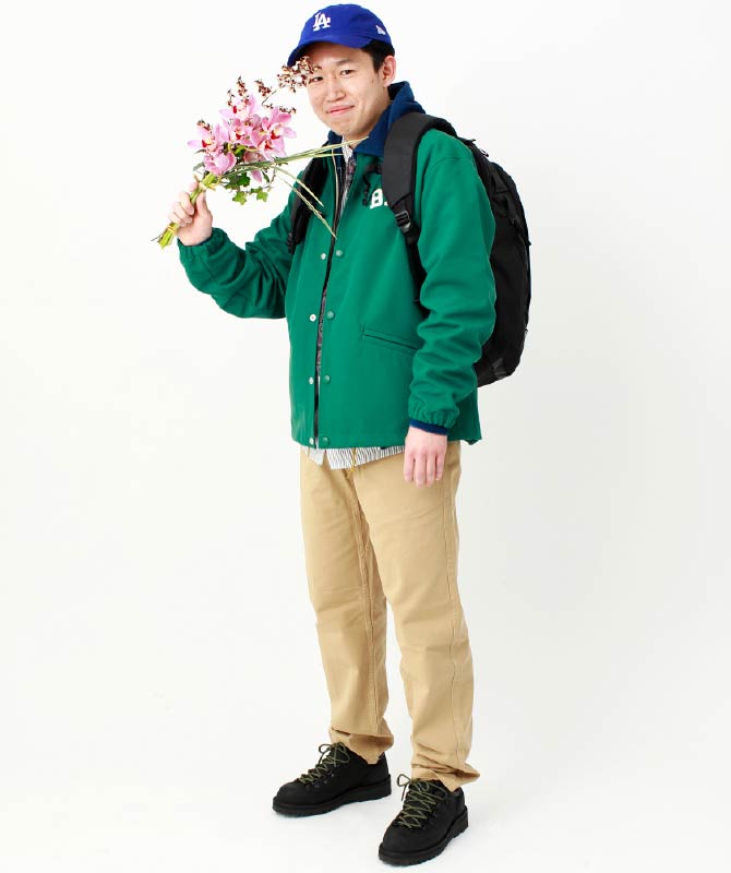機能性とクラシックなデザインを融合した、大人のアクティブスタイル。ダック生地のコーチジャケットは、スクールテイストとワークの雰囲気を取り入れた一着です。ボタンダウンシャツで上品さをプラスし、ゆとりのあるパンツでリラックス感を演出。
