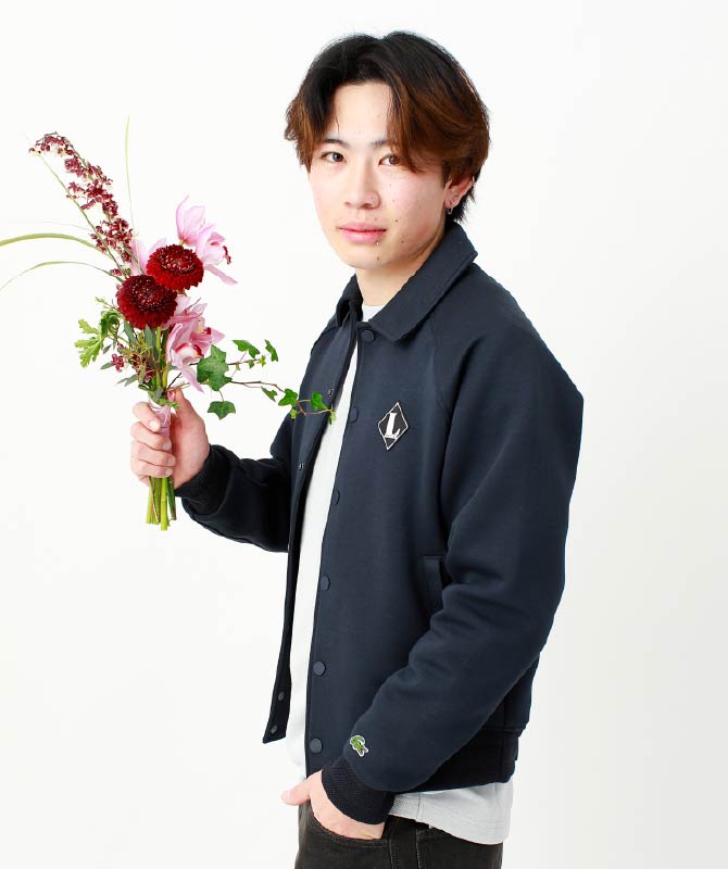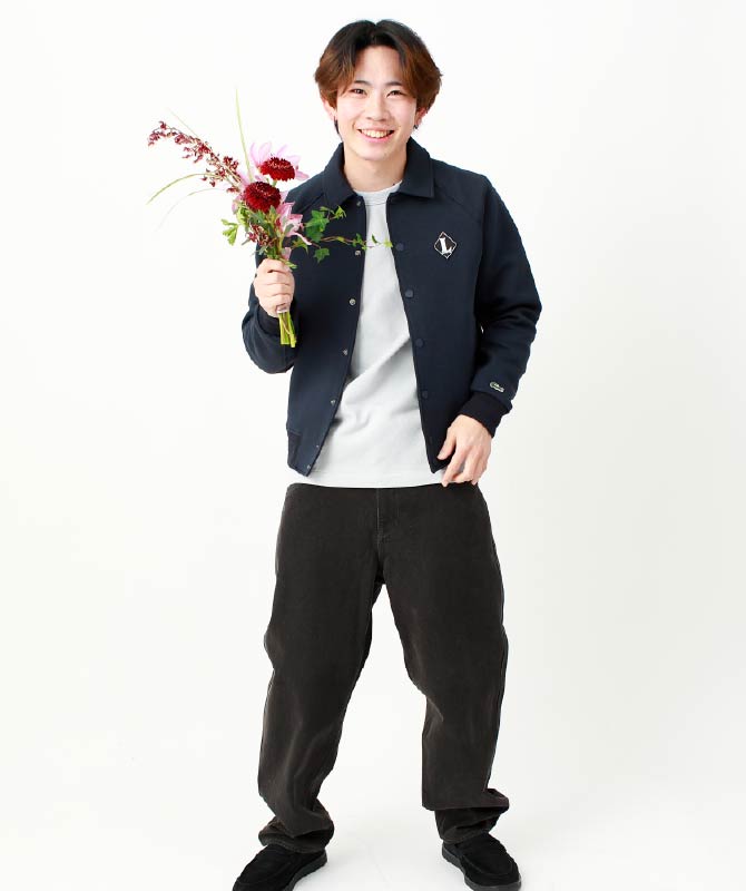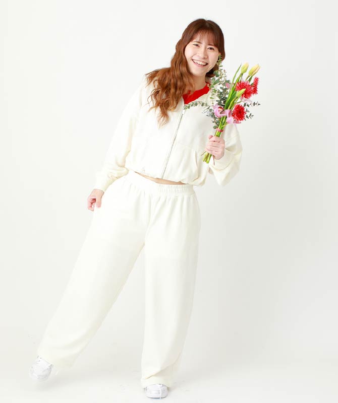 クロップド丈のジップジャケットを主役にしたリラックススタイル。裾のドローコードでゆったりしたシルエットからコンパクトなシルエットへの変化も楽しめます。ボリュームのあるスウェットパンツは、股上を深めに設計し楽な穿き心地。春先でも快適に過ごせるセットアップコーデです。