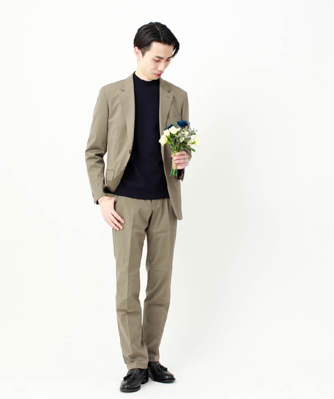 次世代ストレッチ素材と独自パターン技術を融合した「None Of Stress」シリーズ。丸みのある肩まわりと立体的なシルエットで、動きやすさと美しさを両立します。軽やかな着心地とシワになりにくい機能性で、どんなシーンでも快適に着用できるセットアップです。
