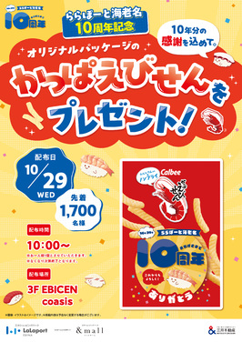 ららぽーと海老名10周年記念 "オリジナルパッケージ"のかっぱえびせんをプレゼント!!