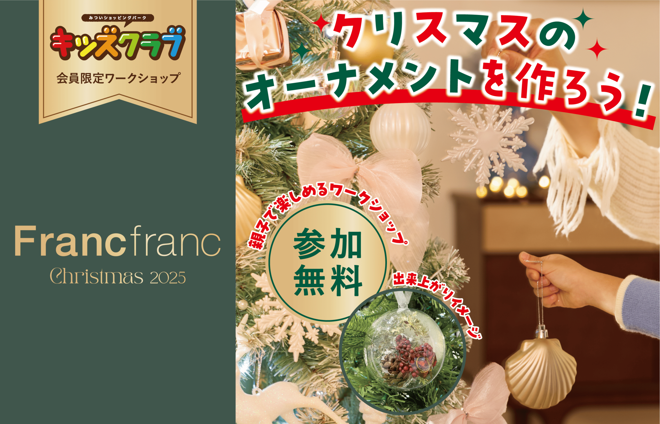 Francfrancでは、オリジナルのクリスマスオーナメントを手作りできる、キッズクラブ会員限定のワークショップを開催します。