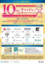 期間中、下記対象店舗にてアプリde支払いを含む対象カードでのクレジット払いをご利用いただくと、ご請求時に期間中のご利用金額(税込)に対して10%の金額をキャッシュバックいたします。