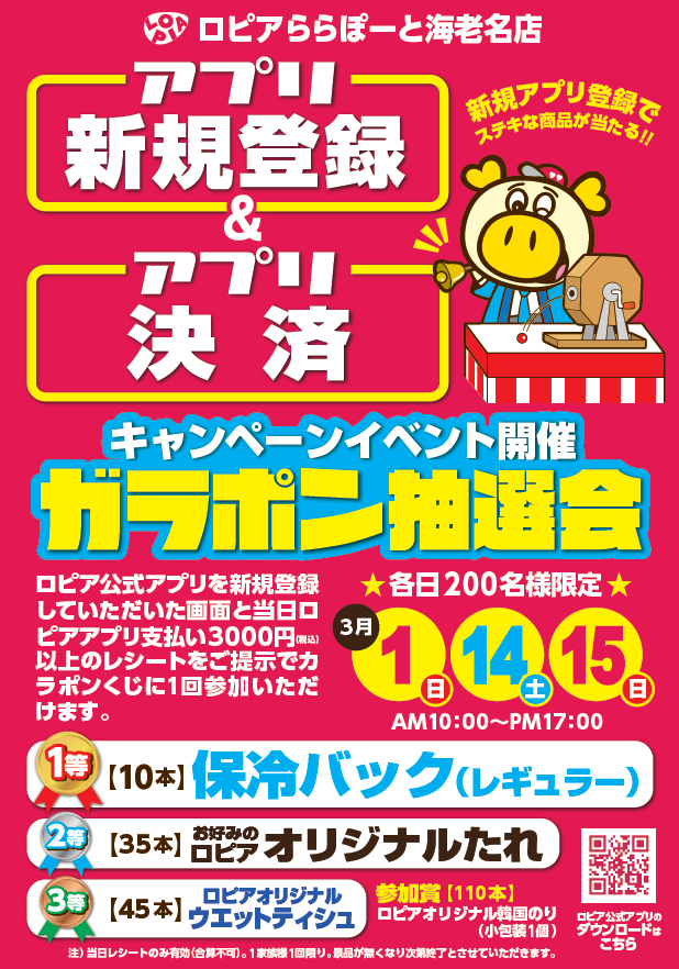 - 各日200名様限定! ロピア ガラポン抽選会実施!!