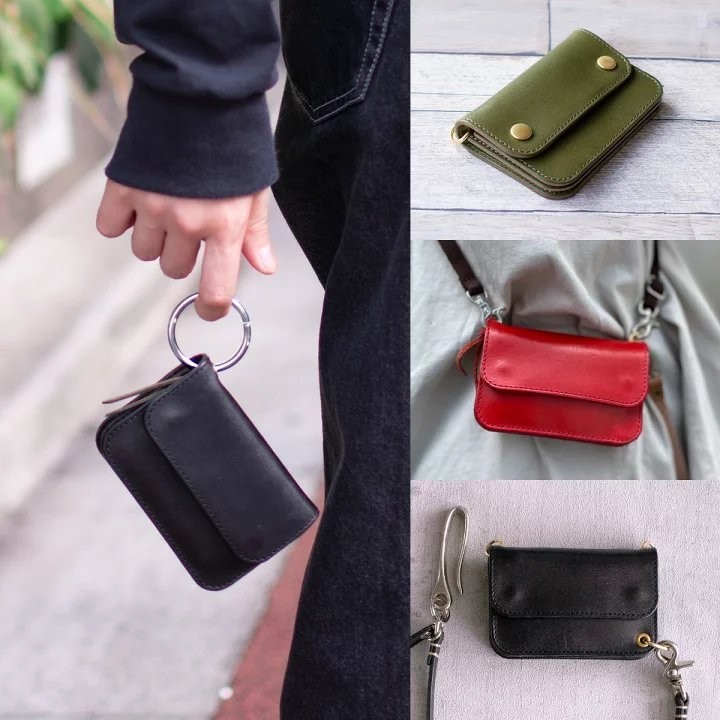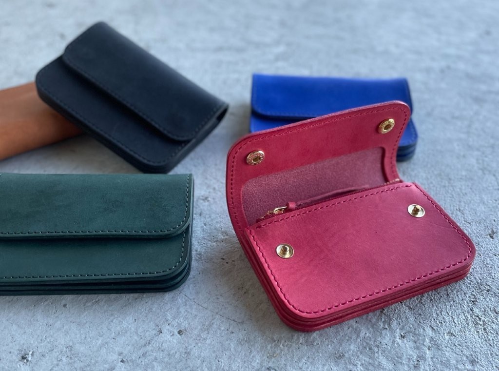 リング付けやボタン出しの加工も行っており、自分だけのお財布が作れます。