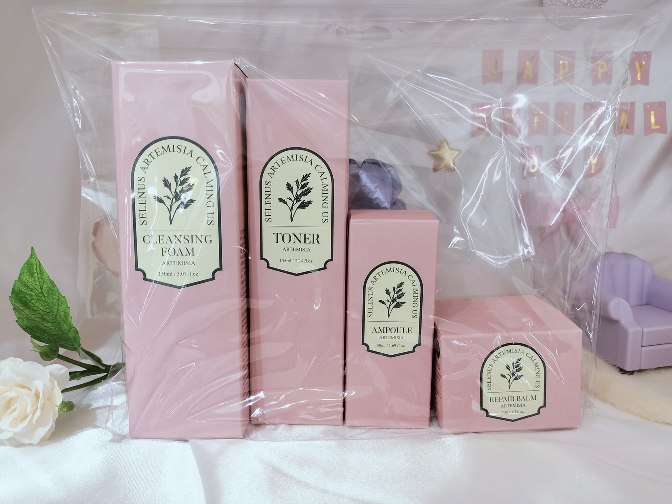アルテミシア(ヨモギ)成分配合の鎮静ラインをフルで揃えた福袋。洗顔から化粧水、美容液、保湿までトータルケアが可能。季節の変わり目や肌が不安定な時期に、やさしく肌を整えたい方におすすめです。