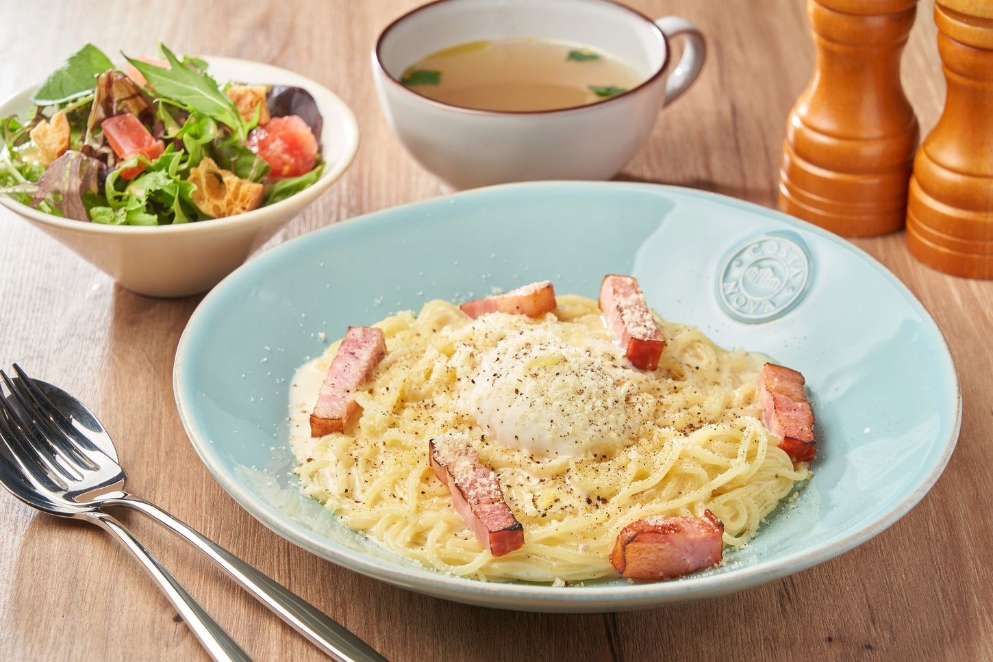 神奈川県秦野市の水耕栽培野菜を使ったサラダや、たっぷりの干し椎茸を使った旨味たっぷりの自家製スープを、生パスタとご一緒にお召し上がりください。