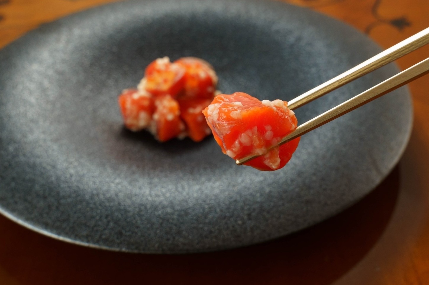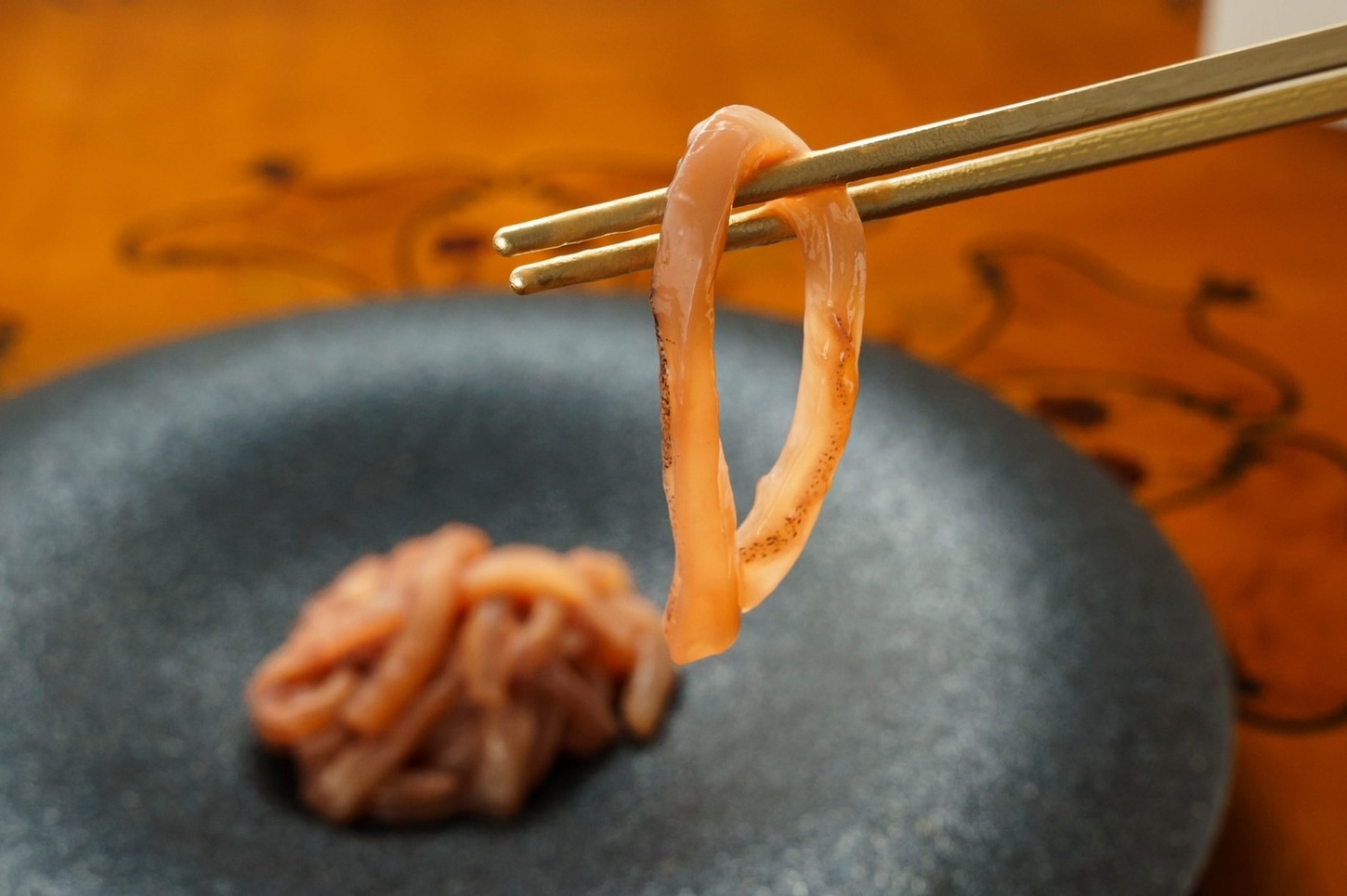 定番のイカの塩辛をはじめとした、紅鮭しぐれ・タコキムチ・ニシン甘酢漬けなど