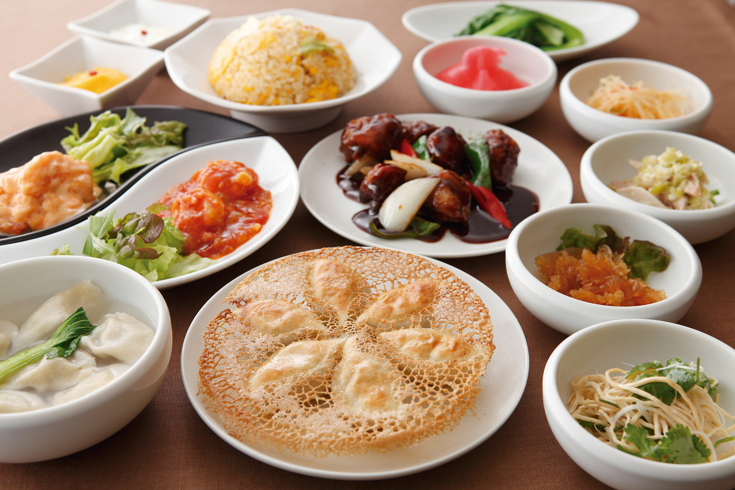 - 餃子、エビチリ、酢豚、麻婆などの中華料理。
