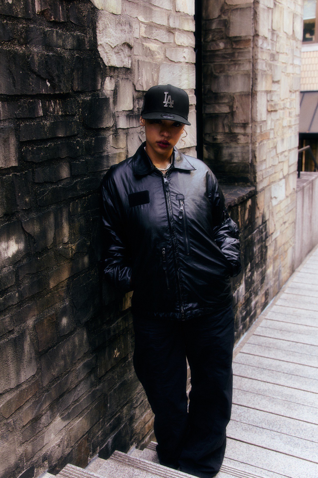 ラグジュアリーの定番といえば、ゴールドやシルバーの輝きである。しかし、今作の<RAVEN BLACK>はあえてその常識を覆すブラックラインストーンをフロントロゴに採用。艶やかな光を放ちながらも、全体に溶け込むような控えめな存在感が魅力となった今作は、ボディ、サイドパッチともにブラックで統一し、余計な要素を削ぎ落としたデザインとなったことでシンプルでありながらも確かな重厚感を漂わせる作品となった。ゴールドやシルバーが放つ華やかさとは対照的にブラックのストーンは光を吸い込むように輝き、その深みのある光沢が、都会的でミステリアスな印象を演出する。派手すぎず、それでいて確実に目を惹く、その絶妙なバランスがスタイリングを静かに格上げする。本作はアジャスティング可能な9FIFTYボディを採用し、恒例のロサンゼルス・ドジャース、ニューヨーク・ヤンキースのラインナップとなった。新たな黒の輝きをまとった<RAVEN BLACK>を是非店頭でお試しください。