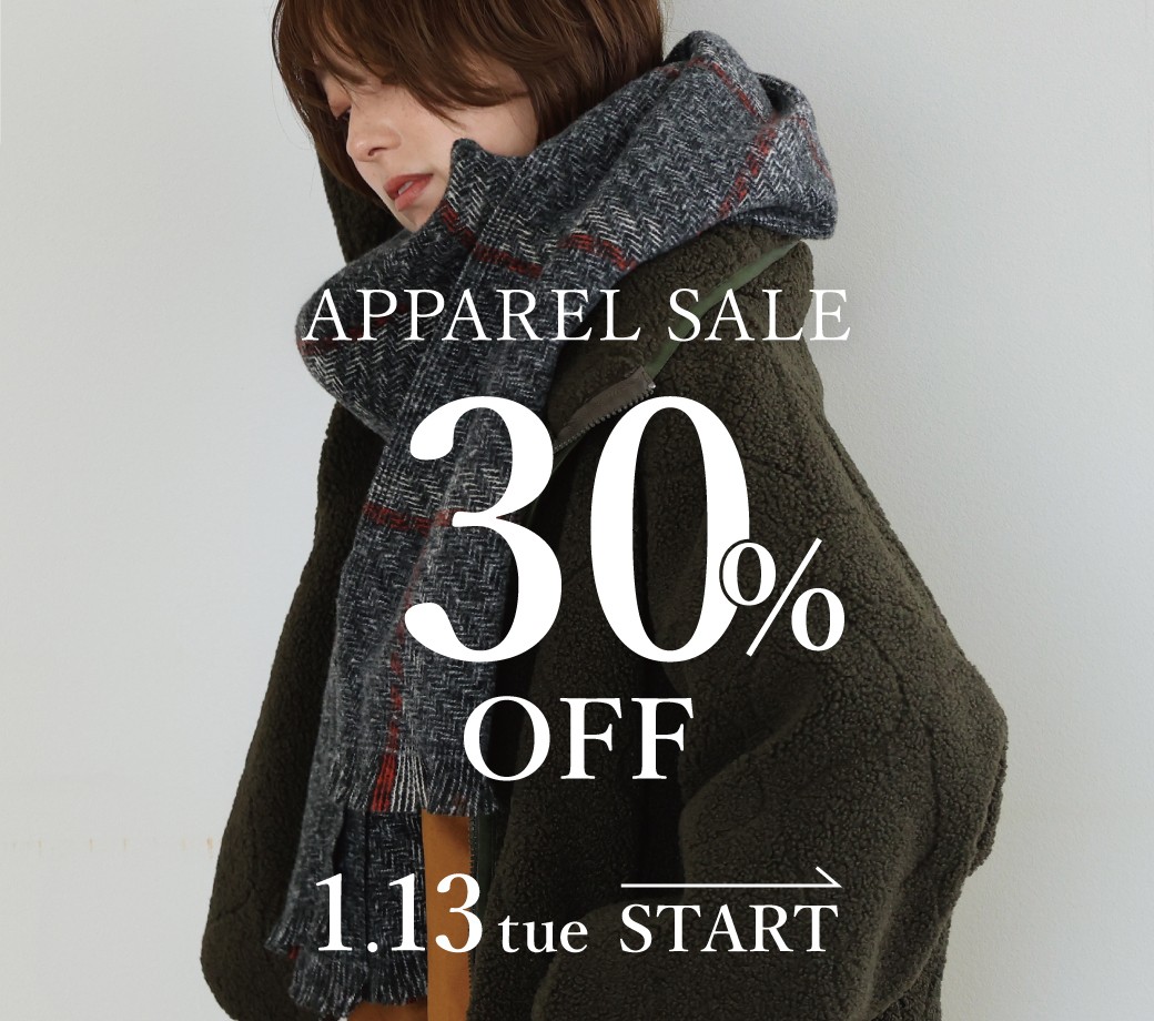 1月13日(火)から、アパレルアイテムのセールを開催しております。
