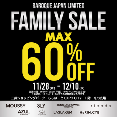 【11/28~12/10】バロックジャパンリミテッドファミリーセール