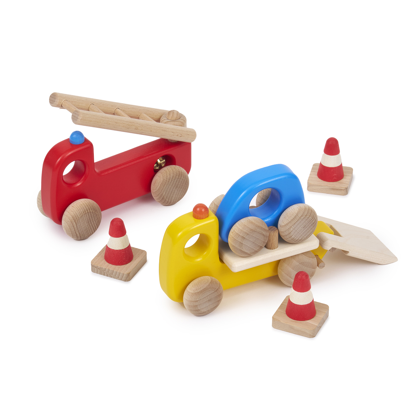 消防車、車両運搬車、乗用車の身近な車がセットに。