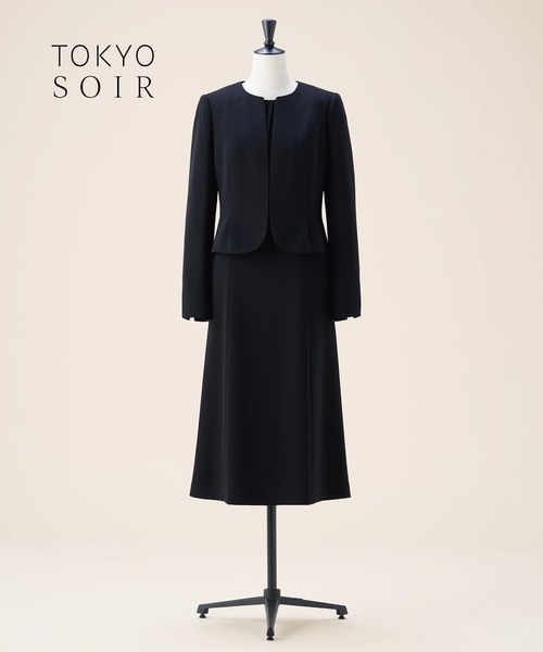 迷わず選べる安心感、人生の節目にふさわしい正統派アンサンブル。フレッシュな印象のノーカラージャケットワンピースを組み合わせた、軽やかで現代的なブラックフォーマルアンサンブル。