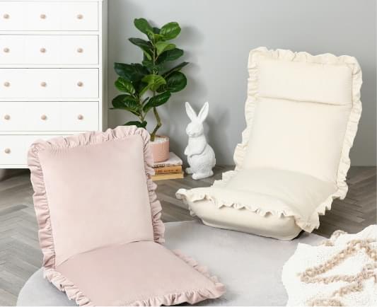 Francfrancならではのフリルが可愛い座椅子。角度調整可能なので、お好みの角度でゆったり過ごせます。