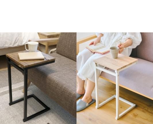 我が家もサイドテーブルをソファ脇に置いていますが、本当に小さなものなので、息子のリモート研修用にパソコンやタブレットを置いて作業できるサイズのものが欲しいと思っていました。この商品はその希望にピッタリ! コの字型なので台の下に膝がしっかりと入り、手元まで台を引き寄せることができます。高さがそんなに高くないので、最近流行の低めのソファでも使えそうですね。アイアン素材の足にマグネットフックを付けて、ティッシュなどを引っ掛けたりしても良さそう! 黒はカッコよく、白はフレンチな雰囲気です。軽いので持ち運びもしやすいと思います。