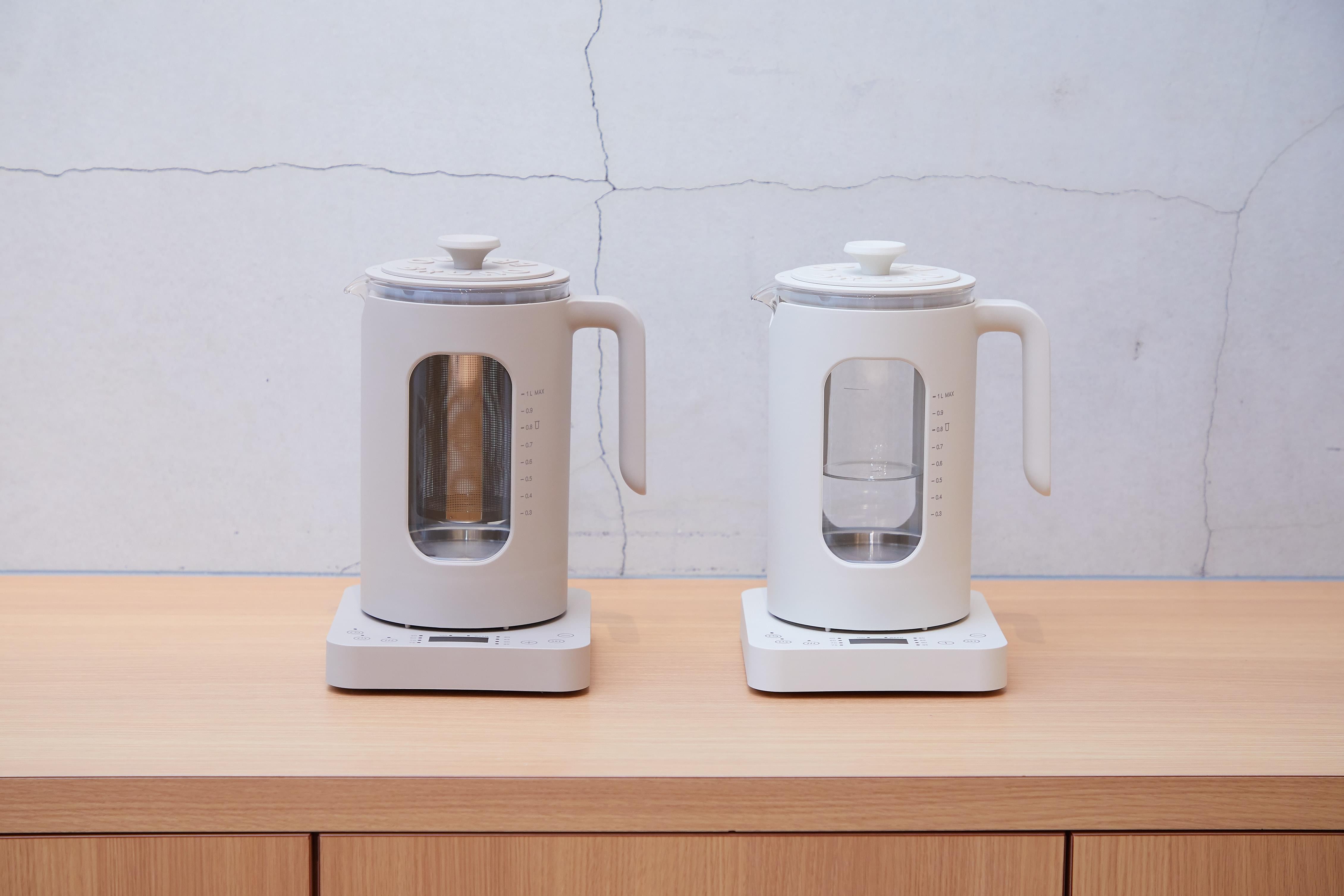 お湯を沸かすだけではなく、お茶を入れたり湯煎調理、ゆで卵もOK。45°C〜100°Cまで1°C刻みで設定可能。茶こし、湯煎カップ、たまごホルダーの3種アタッチメント付き。
