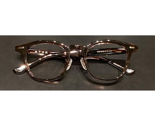 程よいボリューム感のあるフレームです。光沢の美しいセルロイド素材を使いつつも、かけた時に眼鏡が強調しすぎない絶妙なバランスに仕上がっています。普段使いの眼鏡としても、いつものコーディネートのアクセントとしてもお使いいただけます。