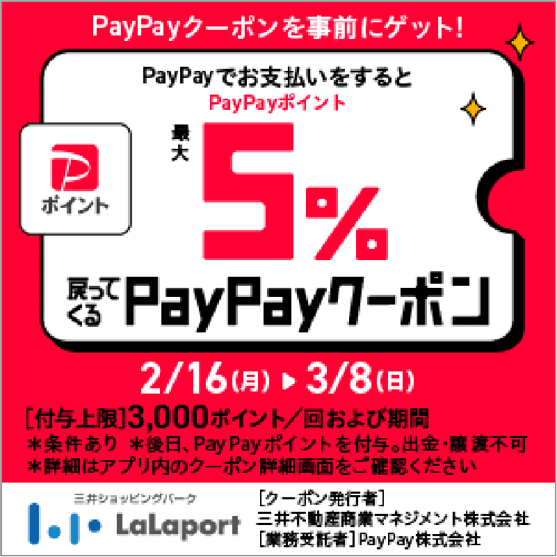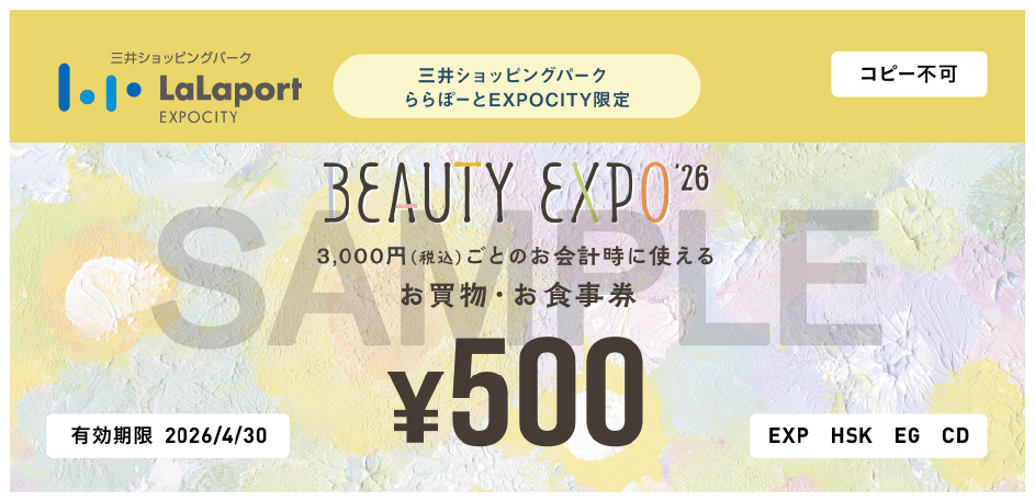 ※お買物・お食事券は、ららぽーとEXPOCITYで3,000円(税込)ごとのお会計時にご使用いただけます。
