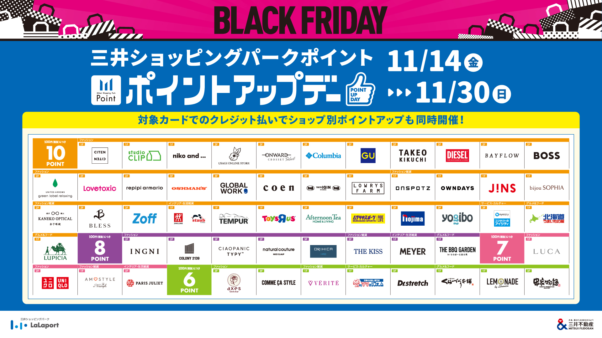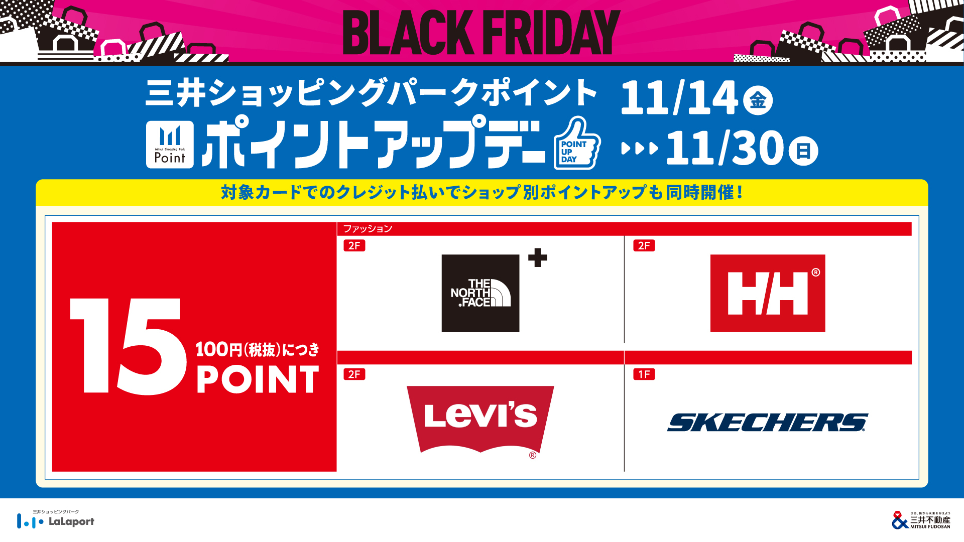 - 11/14(金)~11/30(日) 三井ショッピングパークポイント ポイントアップデー開催!