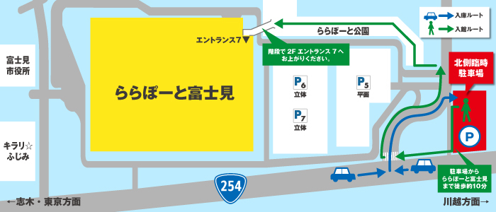 北側臨時駐車場への行き方はマップをご確認ください。