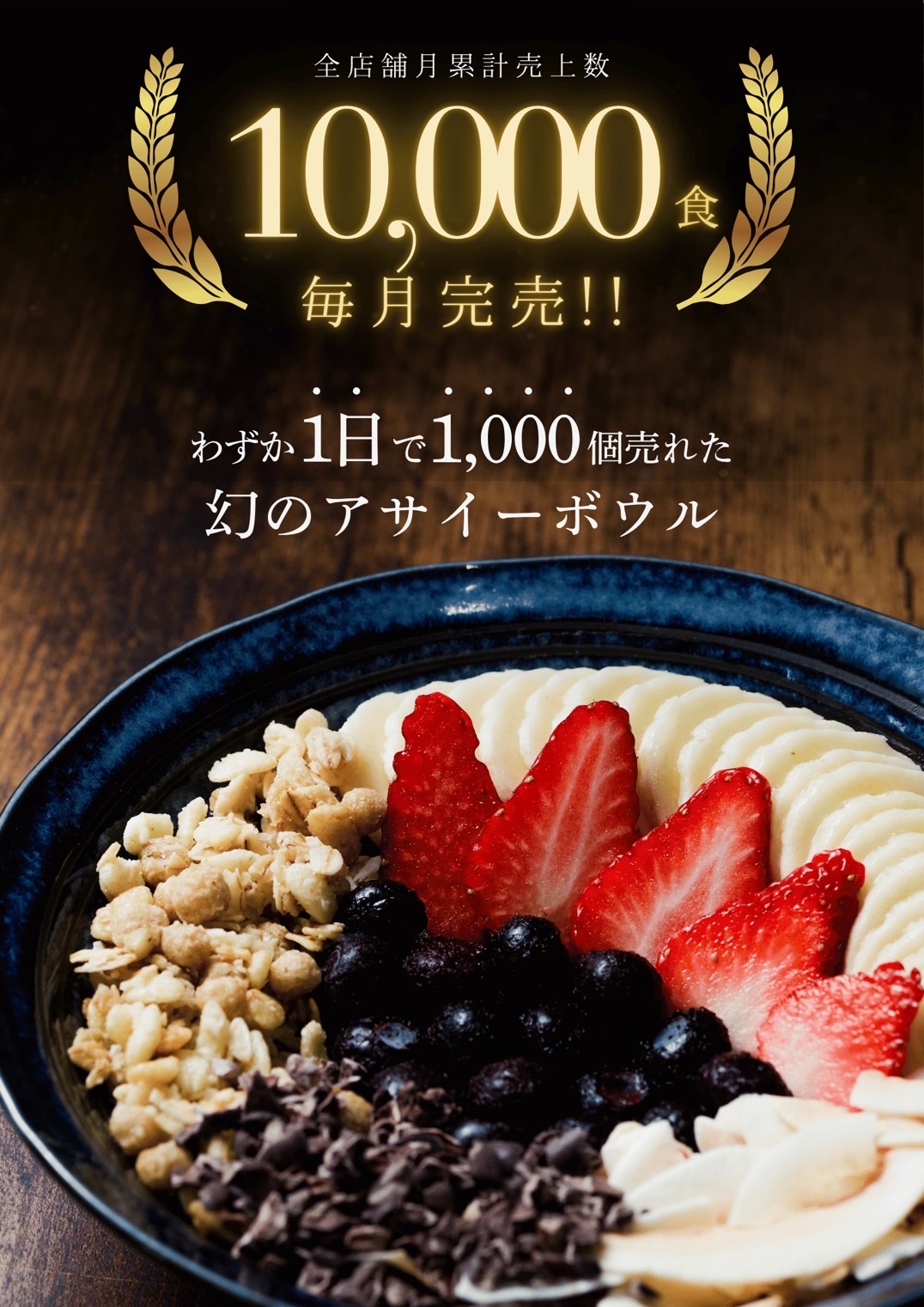 アスリートの身体づくり、運動後の回復、日々の健康維持を考えた栄養バランスと、プロのシェフによる味の完成度の高さを両立。砂糖不使用の高品質アサイーに、フルーツや自家製トッピングを合わせた“身体がよろこぶ一杯”として、地元静岡で幅広いお客様にご好評をいただいております。