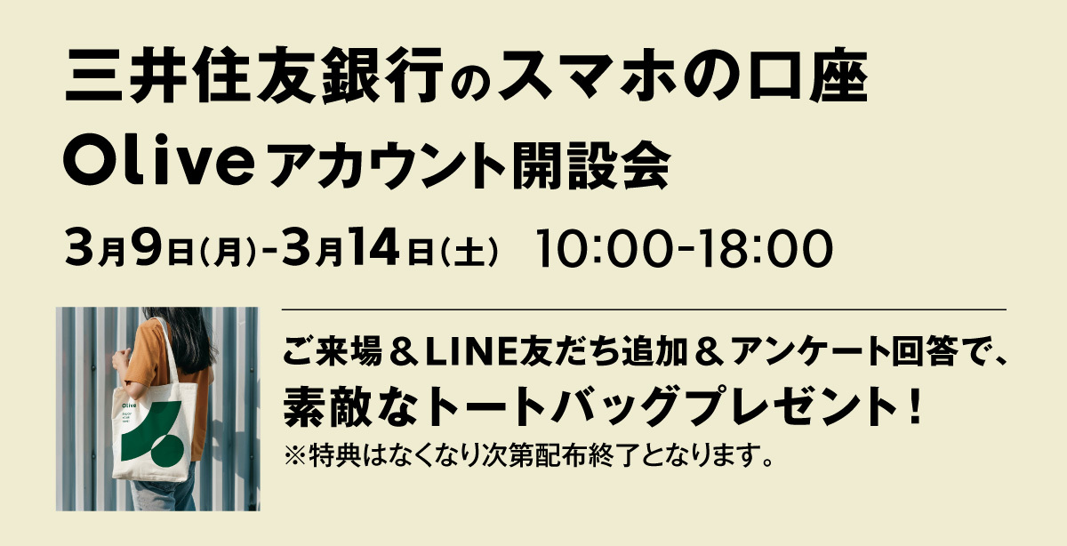 三井住友銀行にて、スマホの口座「Olive」の開設会を開催します!