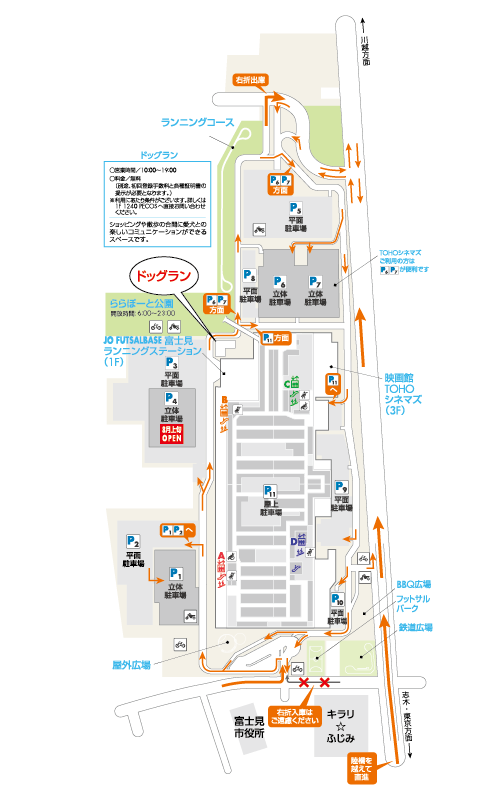 - 1F フードコート、3F レストランエリア・シネマ、フジミテラスでは、ペット同伴でのご利用はできません。